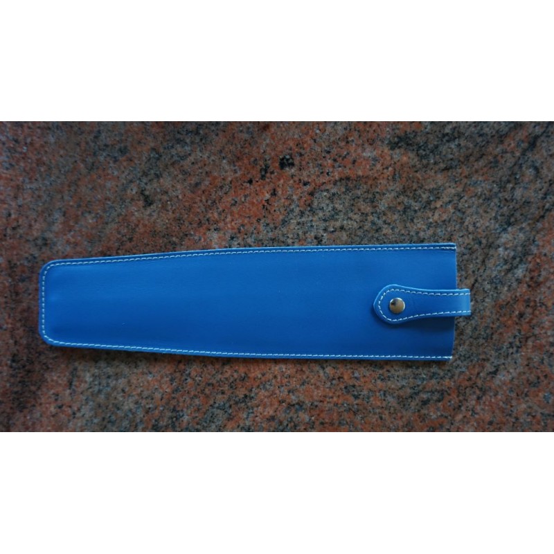 Super einfach und praktisch ist das Etui mit Zugband.  Zum Herausziehen des Fächer ziehen Sie am Zugband (Lasche mit Druckknopf) und ruck zuck haben Sie Ihren Fächer. Es wurde aus Rindleder gefertigt und mit feinen Nähten verarbeitet. Das Etui hat eine Gesamtlänge von ca. 25 cm