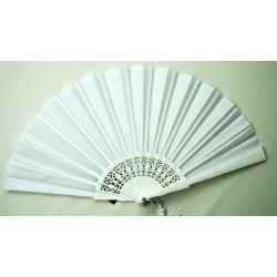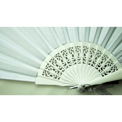 DAS HOLZ IST ETWAS GROB GEARBEITET. DAHER DER NACHLASS. Schlichter schöner Hochzeitsfächer. Ein kleines Blatt mit hübschen Durchbrüchen hält die Bespannung aus weißer Baumwolle. Bügel und Quast dürfen nicht fehlen..