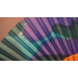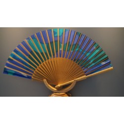 Ein Leichtgewicht unter den Fächern – fein geschliffenes Holzgestell aus Platano passt zu dem eleganten und schmalen Modell mit bedruckter Seide. Ausdrucksvolle Farben in türkis, lila und dunkelgrün verteilen sich über der Bespannung. Verwöhnen Sie sich mit diesem Fächer! Schützen Sie Ihren Fächer mit dem Leder-Etui RZ_523 in petrol zu 14,95 EUR pro Stück.