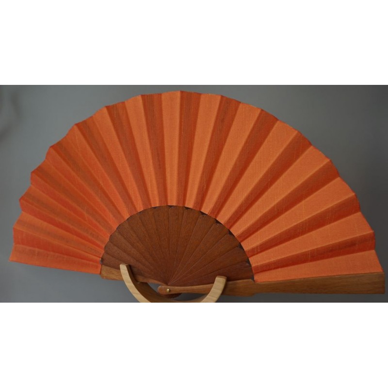 Sie werden diesen Fächer einfach lieben! Das Blatt und die Deckstäbe des Tropenholzes sind breiter gefertigt. Am unteren Rand der Bespannung gibt es hübsche Rundbogen. Die farbige Bespannung aus Rohseide ist nicht nur sehenswert, sie macht auch viel Wind. Ein Fächer für den Lebenstag..
