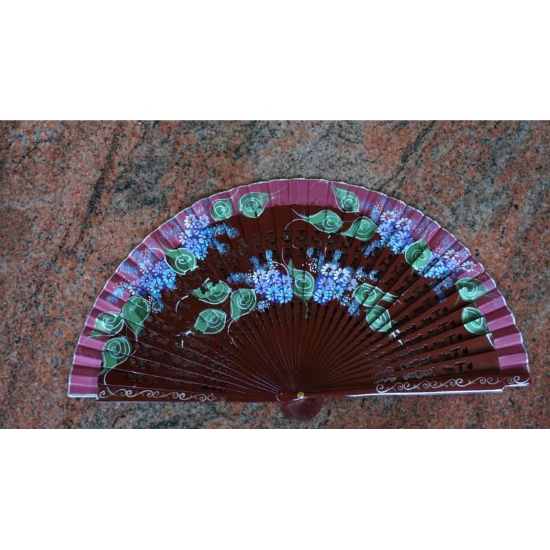 Bildhübscher Fächer für Ihre Handtasche. Die kunstvollen unterschiedlichen Durchbrüche im schwarz lackierten Holz geben eine interessante Optik. Moderne Blüten in weiß, rosa und hellblau sorgen für ein schickes Gesamtbild. Ein toller Blickfang!
