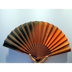 Wie ein bunter Herbstwald - zarte, warme Farben auf Seide. Sehr wirkungsvoll unterstreichen auch die goldenen Ornamente das Erscheinungsbild, Seide verleiht Leichtigkeit. Mit Samtetui,